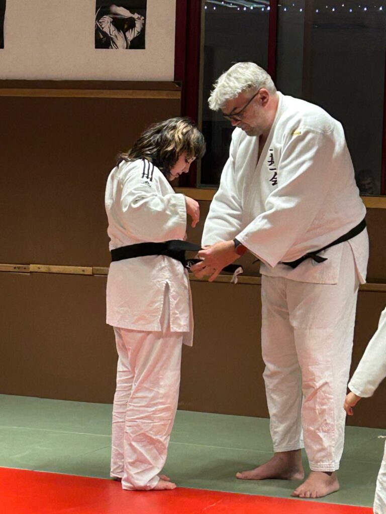 A l’occasion du pot de Noël, Olivia Brébion a reçu sa ceinture noire en présence de Alain Bejaud, à l’origine de la section de judo de la MJC.