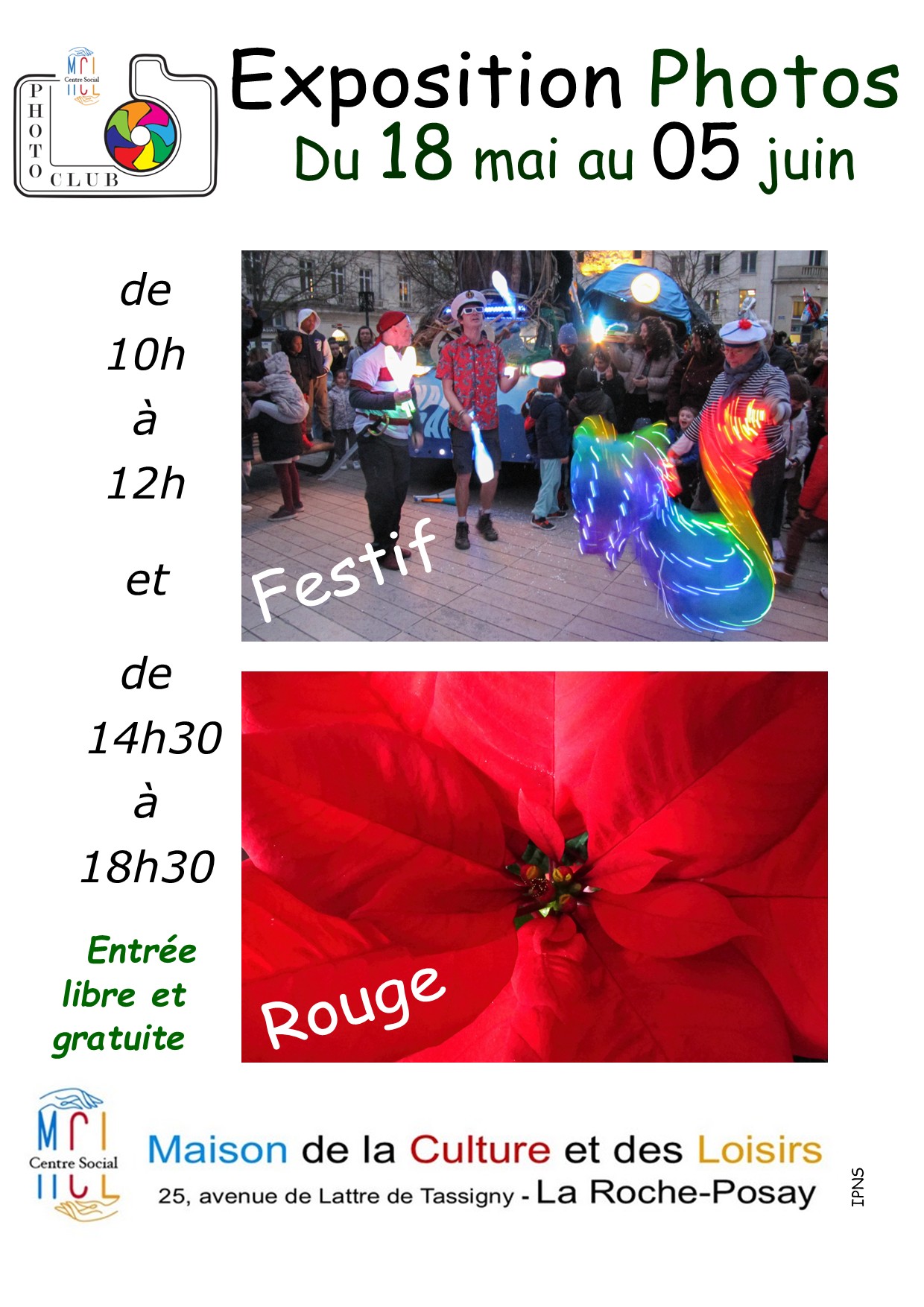 Exposition photos + Ajouter à mon Agenda Google + iCal / Outlook export 00 jours 00 heures 00 minutes 00 secondes Date Mai 18 2026 - Juin 05 2026 Heure 10h00 - 18h30 Lieu MCL 25 Av de Lattre de Tassigny Partagez cet événement